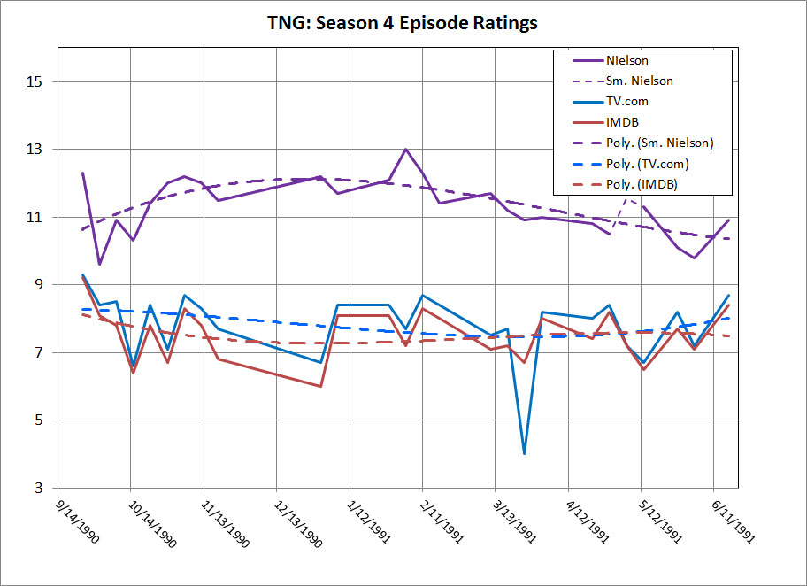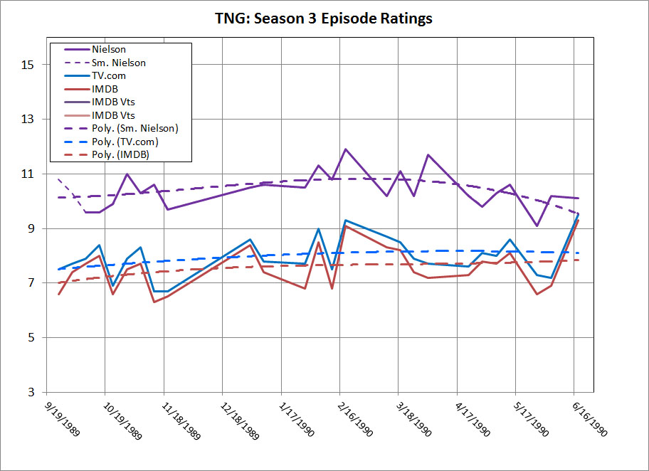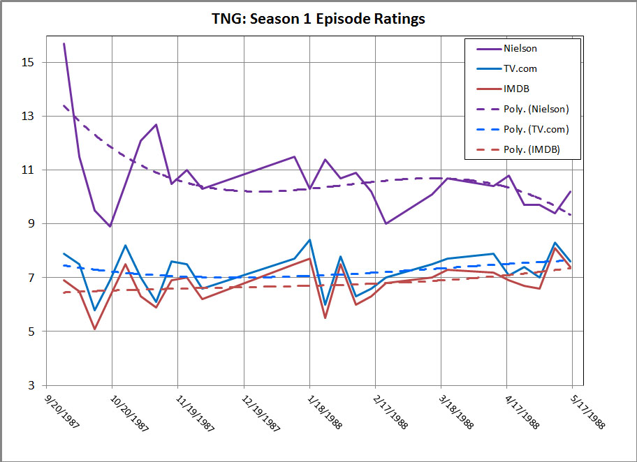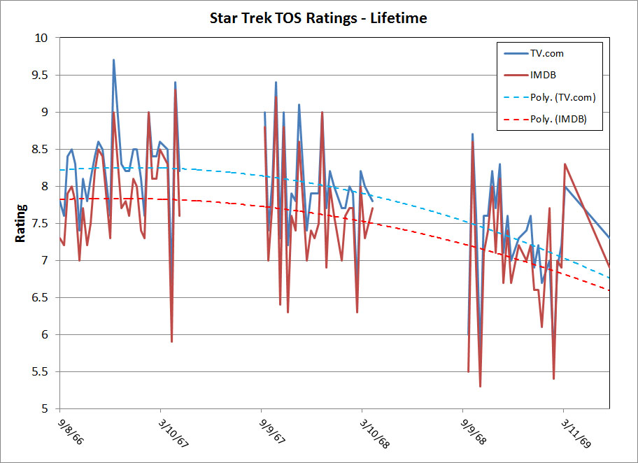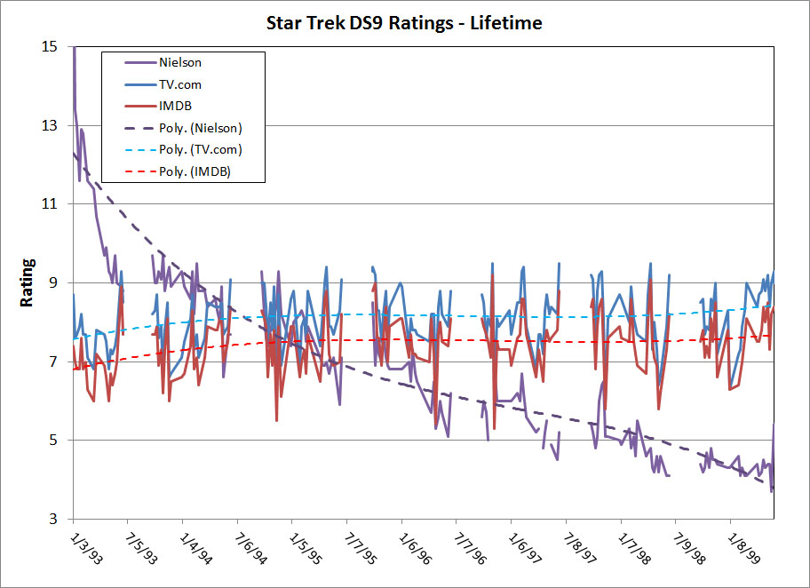 After having gone through a rewatch of Trek's high points, and guiding a lot of that watch on the recommendations of social media, I started to be curious how user ratings and commercial ratings like Nielson's interacted with the shows.