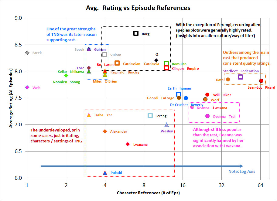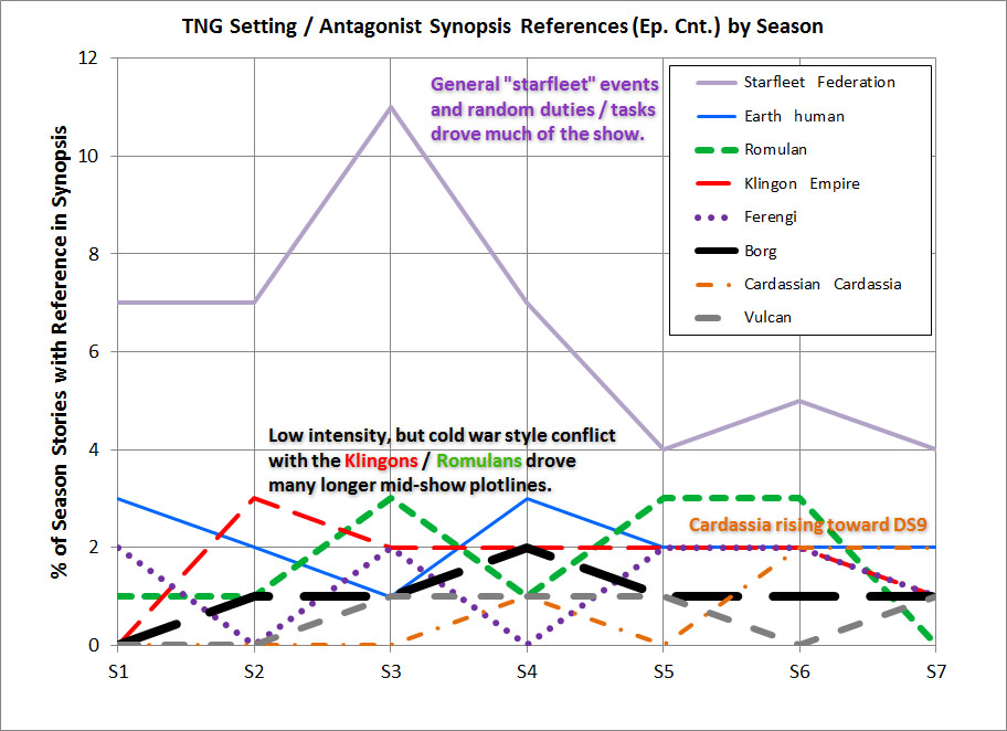 🚀 The Next Generation, Characters, Antagonists, and Settings - Ratings vs References