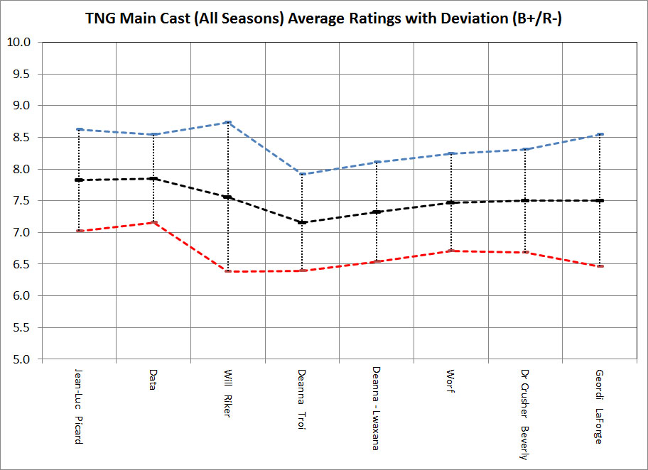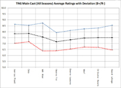 🚀 The Next Generation, Main Cast References / Season and Average Appearance User Rating with Deviations