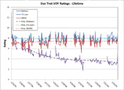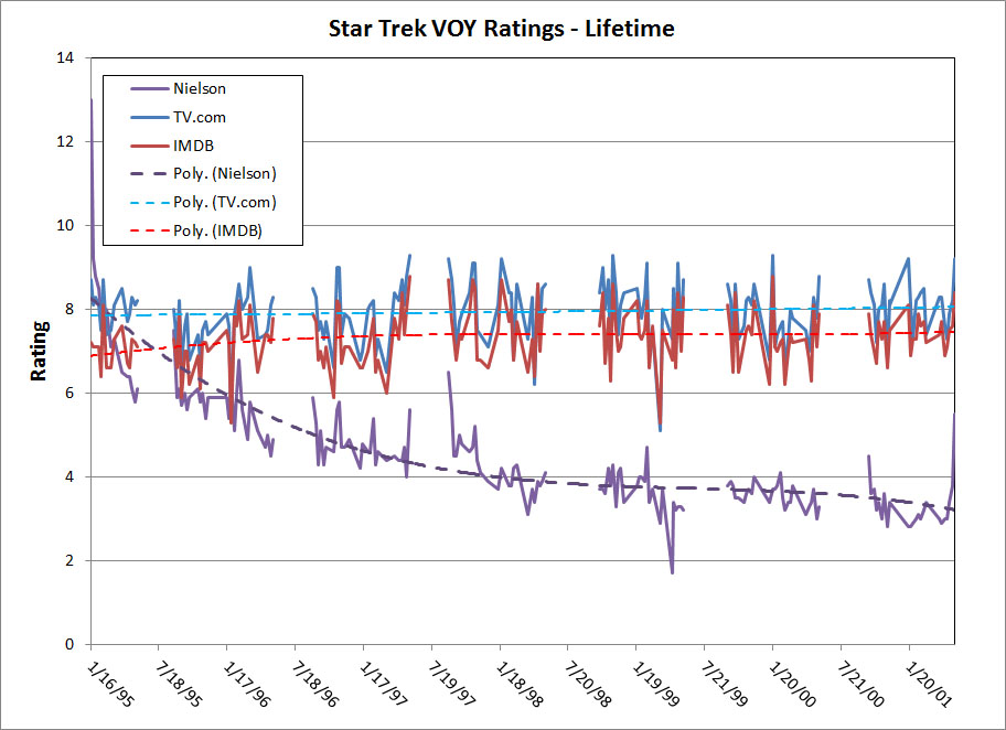 User ratings for Star Trek: Voyager on TV.com and IMDB along with Nielson ratings.