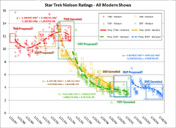Further, VOY then started with audience part way down the slope, and followed nearly the exact-same-path as DS9 in the ratings. By mid-way through their lives they're entwined and look like a helix.