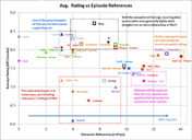 🚀 The Next Generation, Writers for Story, References / Season and Average Appearance User Rating with Deviations